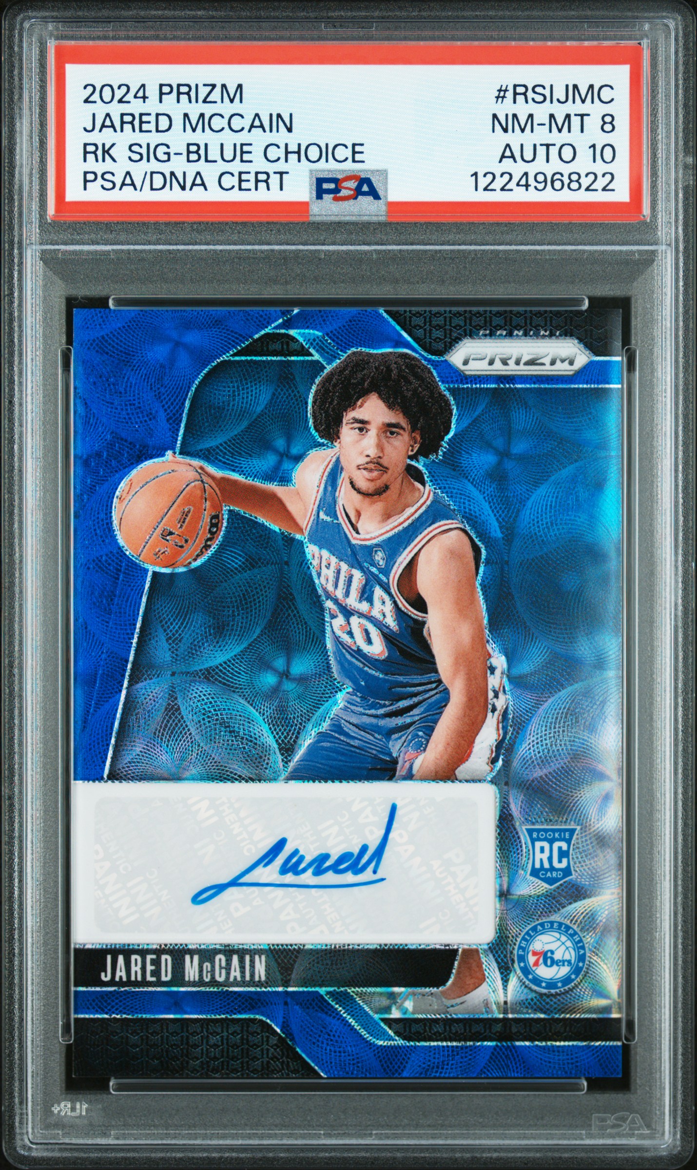 2024 Panini Prizm Jared McCain Blue Choice Rookie Auto #RSI-JMC PSA 8