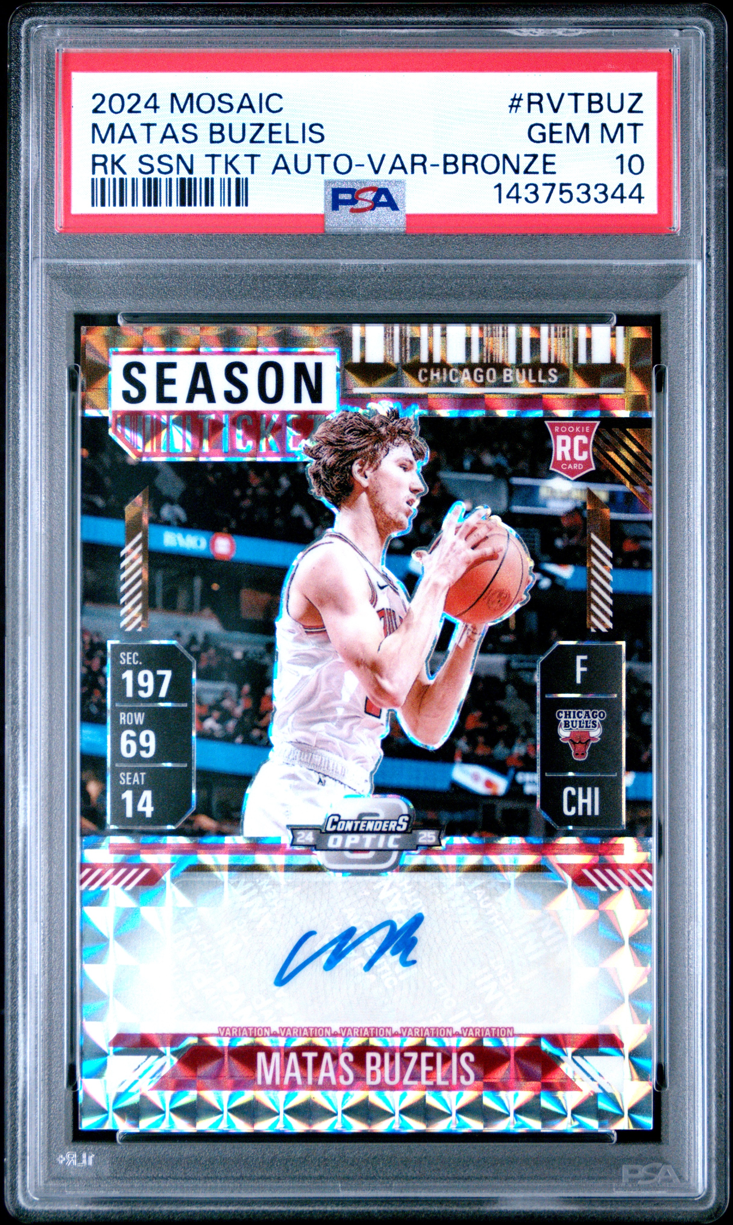 2024 Panini Mosaic Matas Buzelis Rookie Ticket Auto Variation Bronze /75 PSA 10