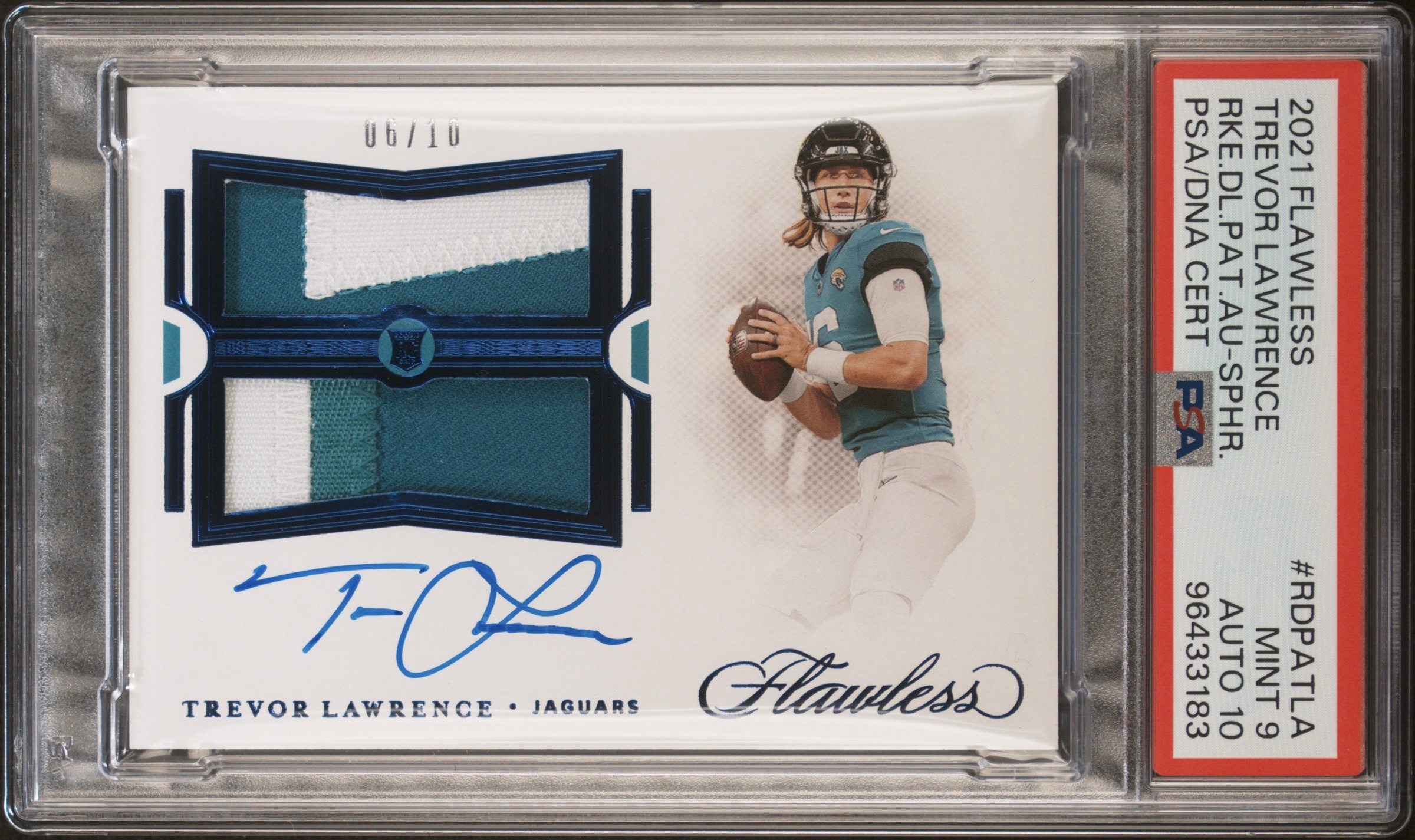 2021 Panini Flawless Trevor Lawrence Rookie Dual Patch Auto Sapphire /10 #RDPA-TLA PSA 9