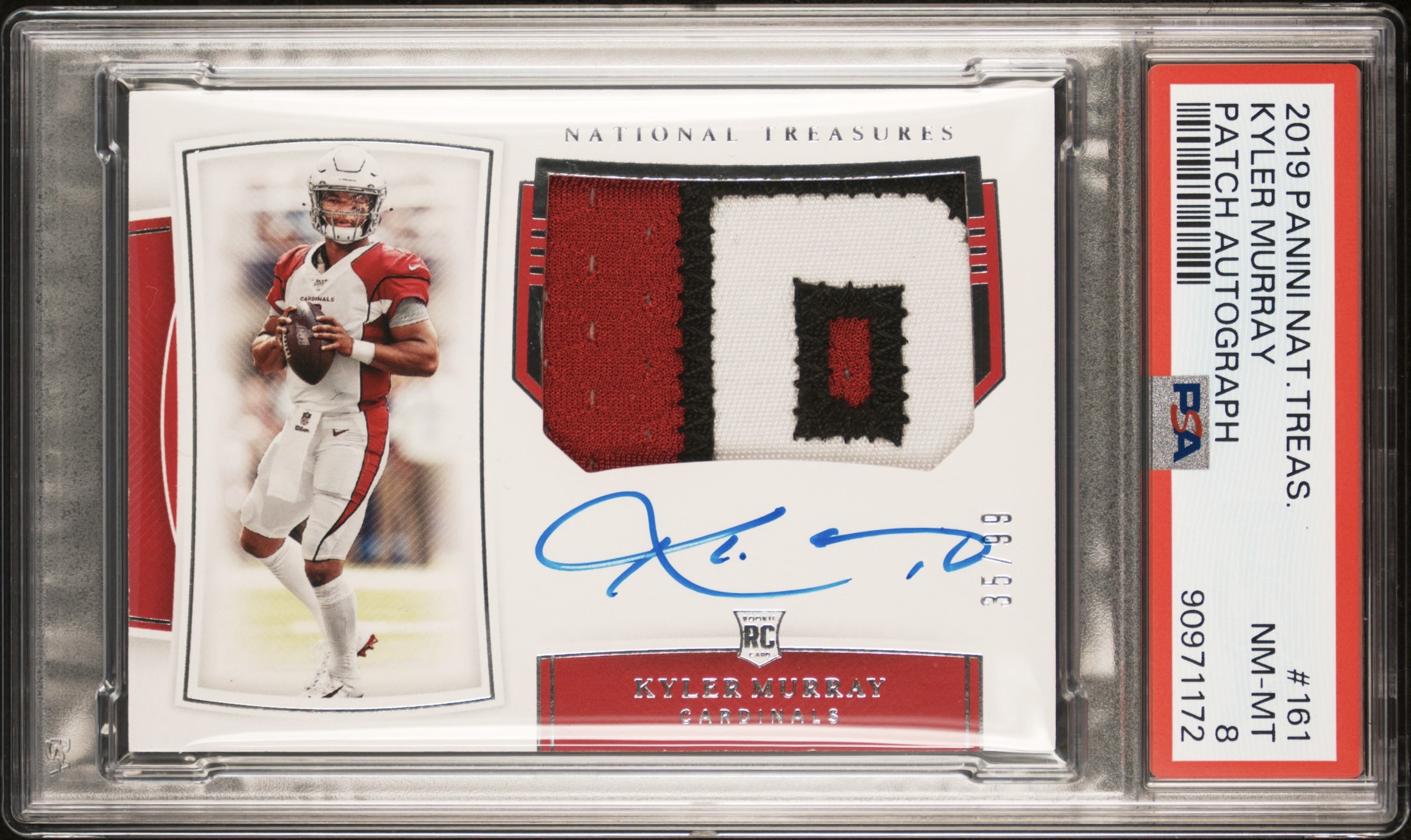 2019 Panini National Treasures Kyler Murray Rookie Patch Autographs #161 PSA 8