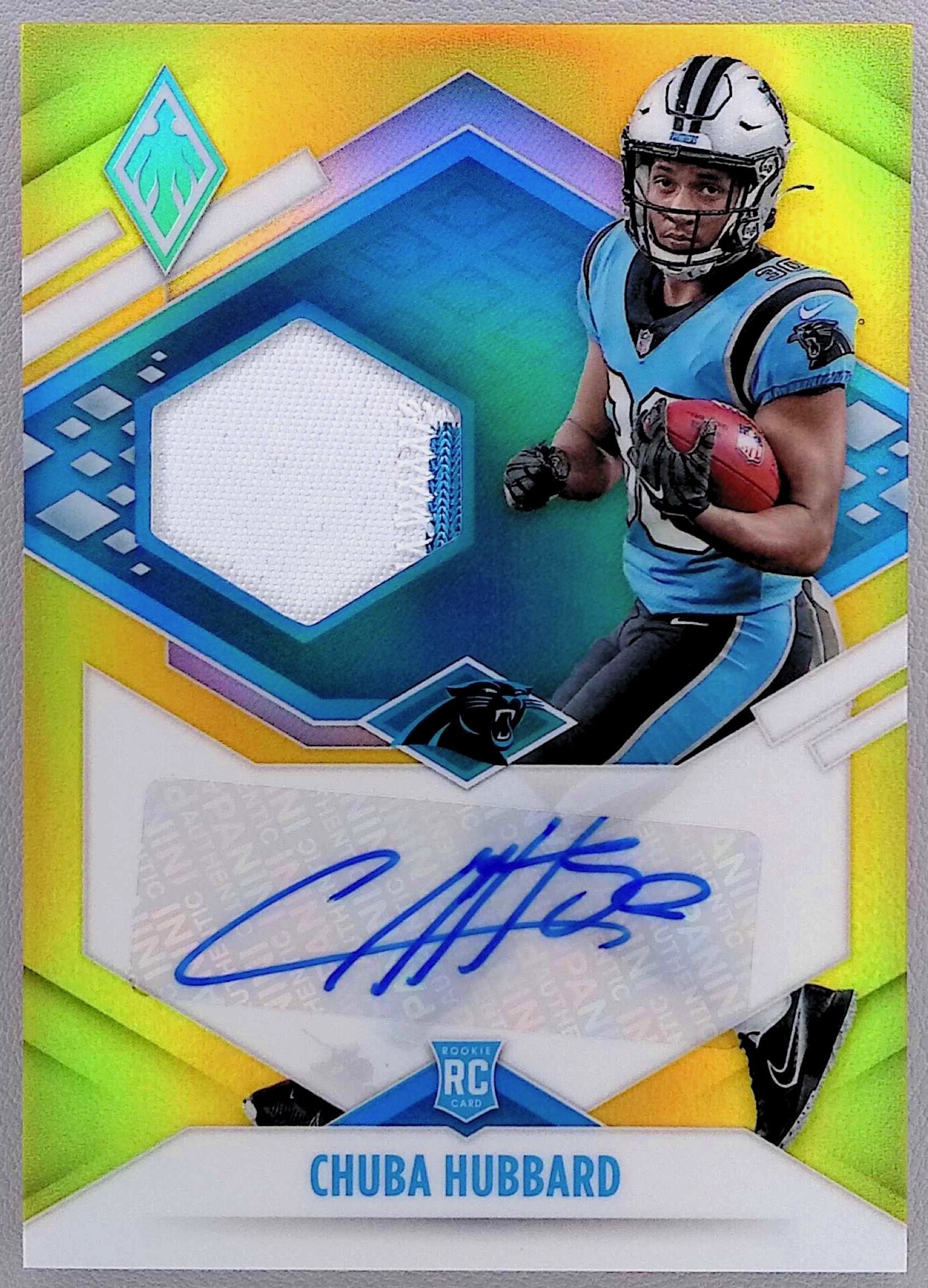 2021 Panini Phoenix Chubba Hubbard Rookie Jersey Auto Yellow /75 #RJA-CHU