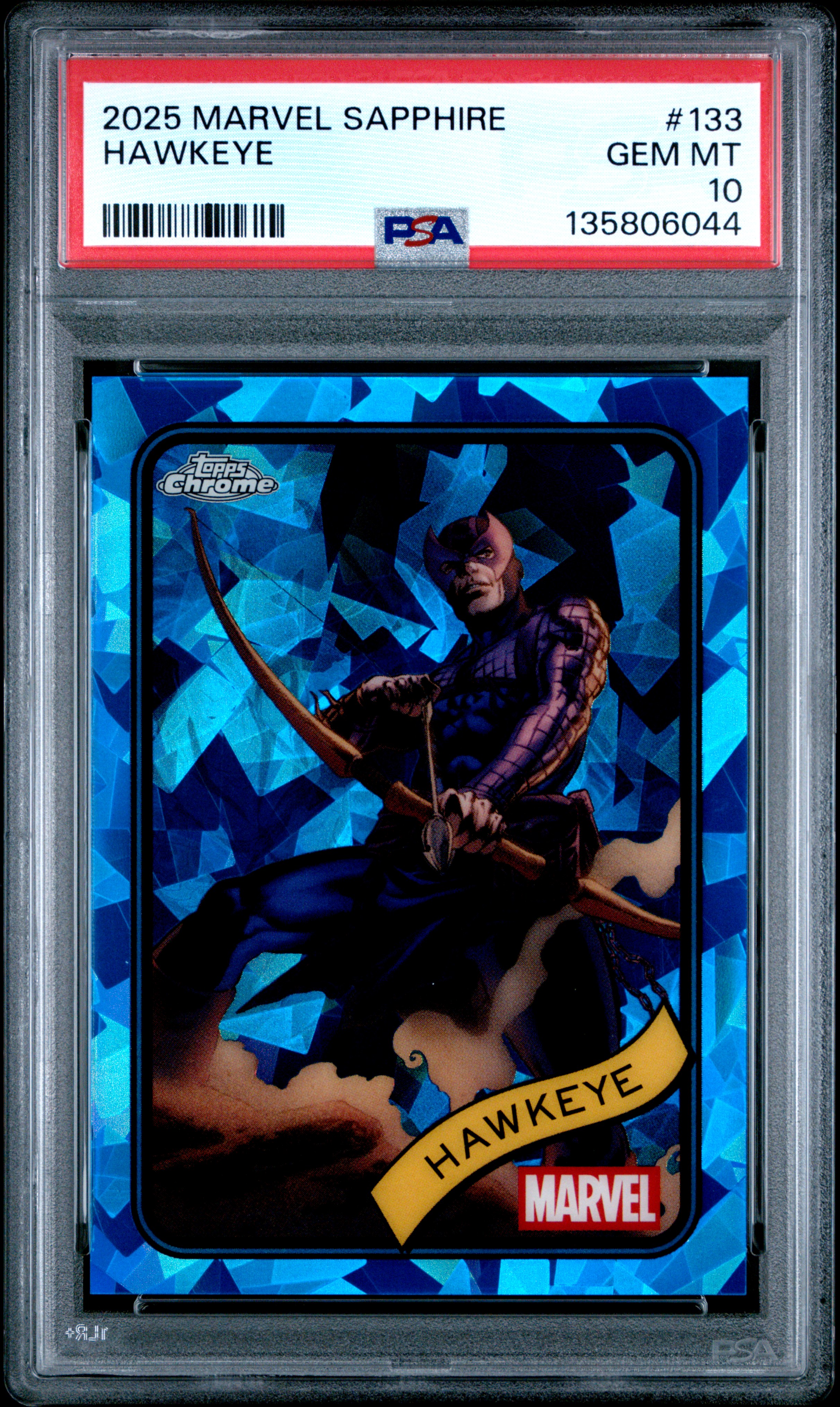 2025 Topps Chrom Marvel Sapphire Hawkeye Blue #133 PSA 10